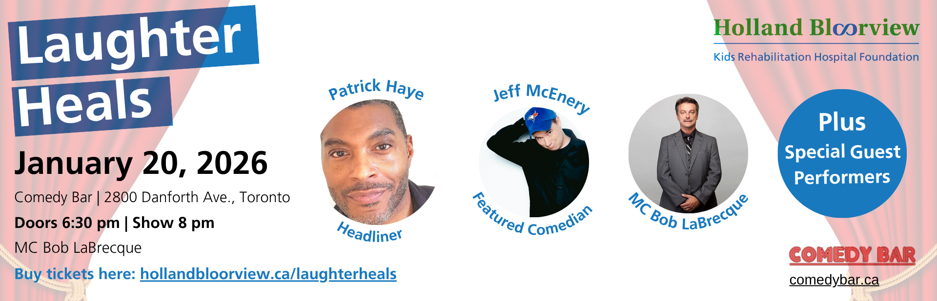 Laughter Heals is back for an encore show! Same place, same time, new talent! Please join us for a night of stand-up comedy in support of Holland Bloorview Kids Rehabilitation Hospital featuring...